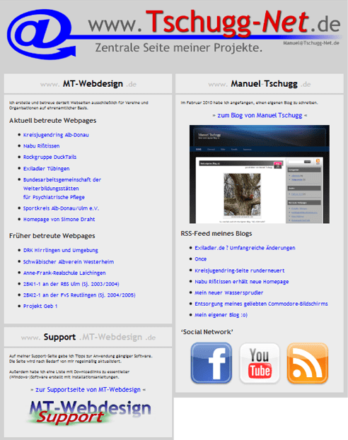 Meiner zentrale Seite www.Tschugg-Net.de spendierte ich eine neue Aufmachung. Sie dient als Schnittstelle zu mir und meinen Projekten.